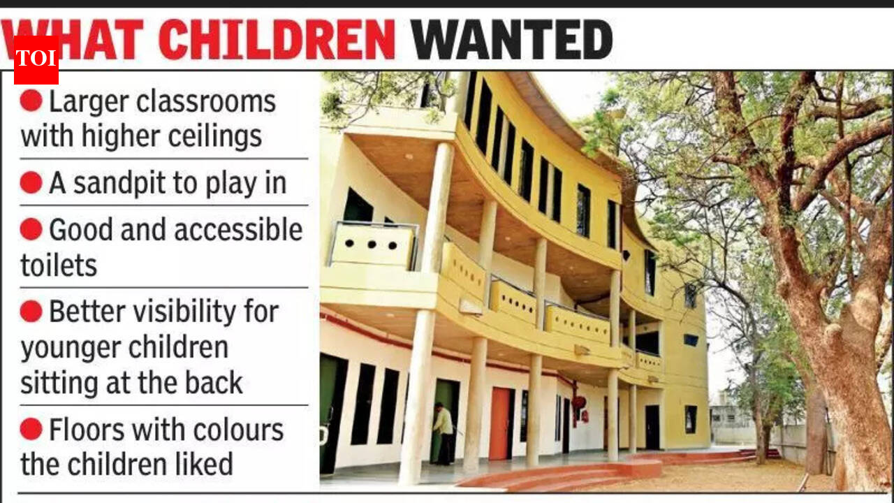 Vadodara: This municipal school building in Vadodara is no less than many private schools. It stands out, and students and teachers here take pride in the fact that their recommendations were woven into the new structure.Shyama Prasad Mukherjee Primary and Secondary School in Atladara stands tall amid thick green cover, as if the trees — some nearly a century old — had grown around the building over time. In truth, the new building replaced the old one without disturbing the trees that give the campus its calm and charm. Before designing the school—which was built and handed over to the municipal school board by Round Table India (RTI)—the designers listened to the voices of those who use it every day. “A workshop was held before designing the school, where students and teachers participated. They gave their opinions on what the school should include,” said the school’s principal, Gaurangi Upadhyay. The workshop was split into three groups of students and filled with hands-on tasks. Students shared their ideas through drawings and paintings, essays and speeches. Site plans were laid out, and children placed markers and materials on them to show how they pictured their ideal school. Project architect Bhavik Thakkar said the effort followed a participatory design process. “We incorporated several aspects from the suggestions received at the workshop. These included higher ceilings, larger classrooms, good toilets, a sandpit and others,” said Thakkar. He added that the children felt uneasy in low-ceilinged, cramped classrooms. The new building fixes that with ceiling heights of 15 to 18 feet and classrooms spread across 550 to 650 square feet. Even specific concerns were addressed. Students of Classes 3 and 4 said they struggled to see the teacher from their desks. Their feedback led to the creation of an amphitheatre-style classroom with stepped seating. The floors across classrooms use natural stone in colours chosen based on the students’ inputs. Thakkar added that the design brings in as much sun and fresh air as possible. The central atrium has vents that let hot air escape, and the flow of fresh air into the building stays free and steady. The Baroda Young Turks Round Table 201 oversaw the project. Upadhyay said the campus had about 100 trees, and all but two were left untouched. “Two trees were transplanted to different locations only because it emerged that their roots were in the way of the foundation,” she said. The school now has seven classrooms, an activity room, a science lab, a library and an amphitheatre. Fifty paintings created by children during the workshop brighten its walls. The new building has been named New Horizon. VMC primary education committee administrator Vipul Bhartiya said eight new school buildings were opened in the recent past. “More schools which are equipped with the latest technology are planned with various NGOs,” he said.